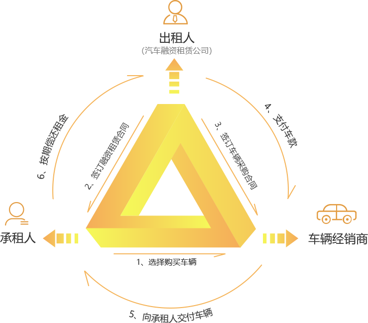 售后回租即承租人將自有車輛出賣給出租人,同時與出租人簽定融資租賃合同, 再將該車輛從出租人處租回的融資租賃形式。售后回租業務是承租人和汽車經銷商為同一方的融資租賃方式。