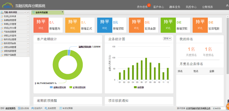 互融云購車分期系統是針對汽車金融公司、汽車經銷商、助貸機構推出的購車分期貸款系統,系統集合客戶管理、征信認證、經銷商管理、車貸自動計息、貸款審批管理、系統流程管理、貸后監管、貸后業務辦理、財務對賬管理、GPS管理、統計分析等一系列的管理和監督功能,使得汽車分期貸款業務從開始到結束的所有信息均掌握在平臺手中, 以應對各種市場變化。在貸后中使用了貸后監管、利率變更、提前還款、還款催收、借款展期、本金挪用等功能應對各種貸后業務變化。此外系統還支持節假日維護,逾期寬限期,各種產品配置等人性化功能,使平臺能夠更高效的運行。